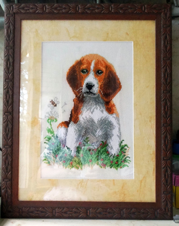 Вот и у моей любовь к биглям))) Вышивка эта от Матренина Посада. Но качество... хотя и результат вышел симпатичный)))