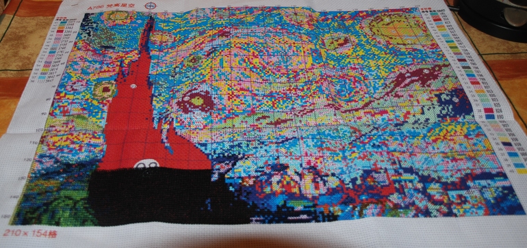 Приложенные иголки были не лучшего качества, одна сломалась на четверти, а другая почти сразу следом. На выручку пришла игла от какого-то ранее отшитого набора, она стойко дожила до самого завершения. Это мелочь, но все же.
