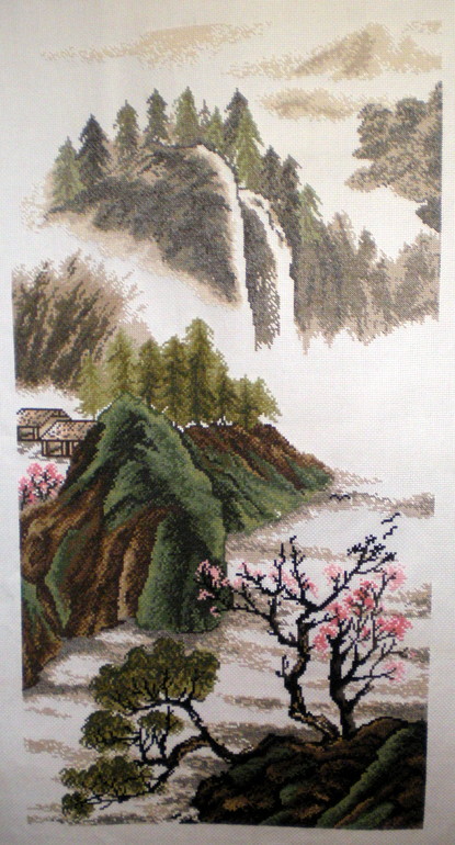 Набор не маленький такой. Размер 50 на 75 см. Канва Аида 14, что не могло не радовать. Вышивала в 3 нити, в 2 слишком жидко плучалось. Времени ушло чуть меньше 4 месяцев. На самом деле сюжет мне совсем не нравится. Для себя бы точно такое не стала вышивать. Но поскольку канва 14, крест и полукрест, ничего сложного, работа вроде как двигалась в ровном темпе. Перепутала направление полукреста, в превью в другую сторону вышито. Ну да ладно, думаю не критично. Ну и фоточки.