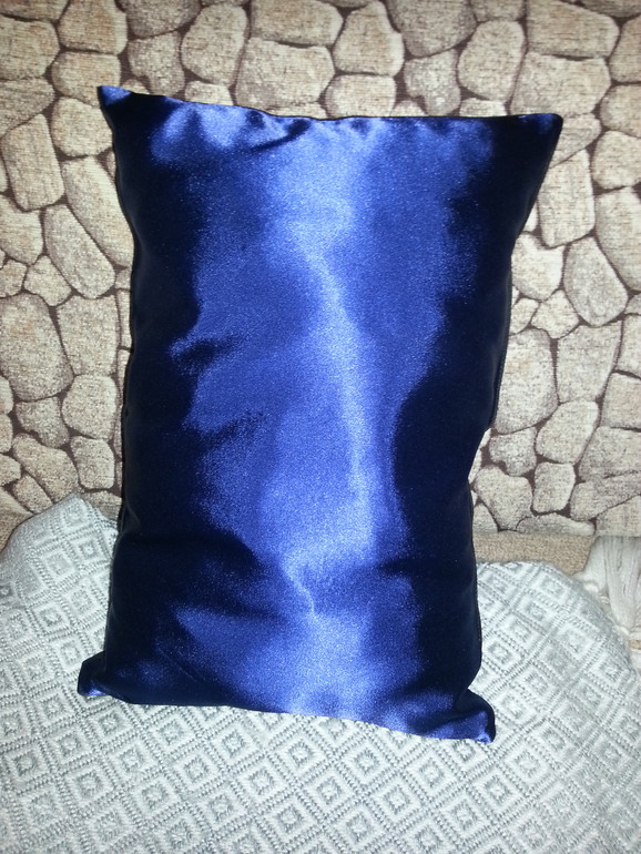 Задник атлас. Подушка сама тоже из атласа. Набита синтепоном.