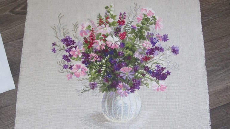 А мне шерстью прям понравилось вышивать, крестики такие набивные, никаких просветов, единственное, заметила, один цвет, нитки прям вытягиваются, надо понемножку заправлять.