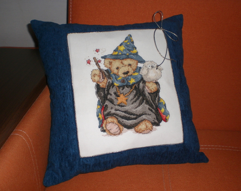 Вышивка крестомУра - ура ! Я это сделала !!! )))))) Смастерилась еще одна подушка ))) Еще один , мной обещанный подарок ( который я хотела подарить еще зимой , но кто на это обращает внимание , творчество оно же такое , когда нахлынет ))))) ) Мишаня-Волшебник :