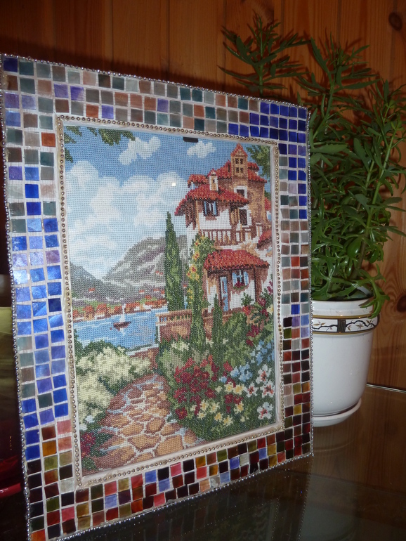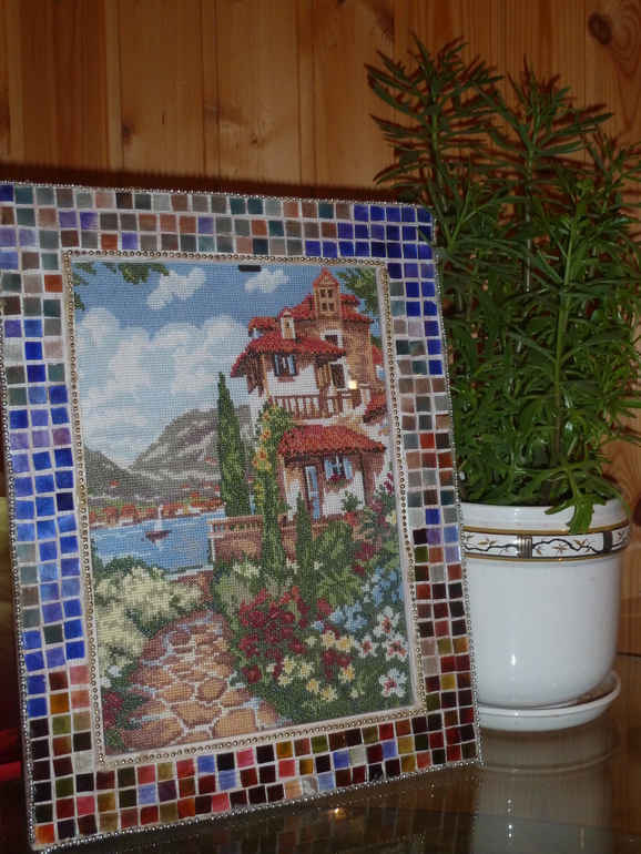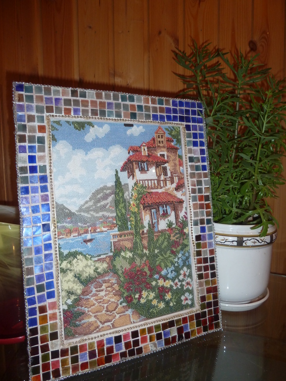 Вышила и отдала своей подружке рукодельнице, она сделала вот такое замечательное оформление. Мне очень нравиться!