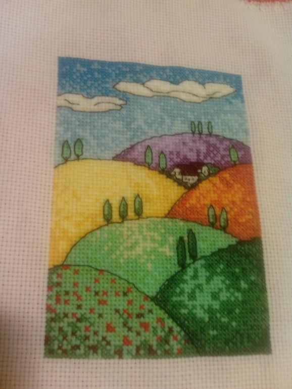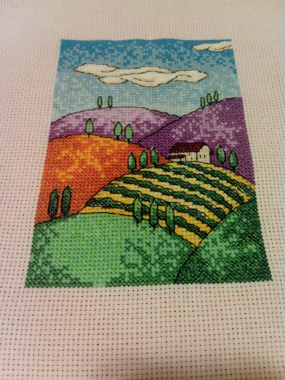 Вышивка крестомРешила отдохнуть от основного большого процесса. Да и очень цвета и света таким летом не хватает. Вот вышились пейзажики. Пока без оформления. Нитки все подбором. По схеме аж 23 цвета на 2 картинки,обновлять запасы ниточек не хотелось. :)