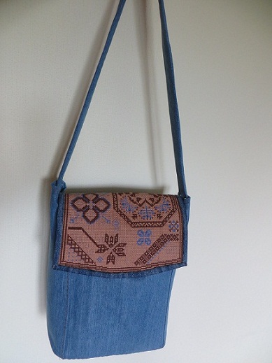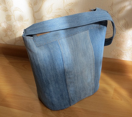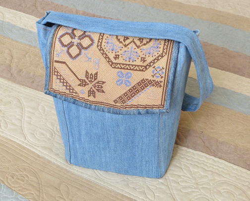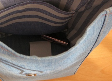 и чудесной синевы на бежевой канве. А потом этот пазл сам собой вот так сложился.И теперь у меня есть новенькая сумочка на лето-осень , чему я рада. И немного подробностей, вид сзади