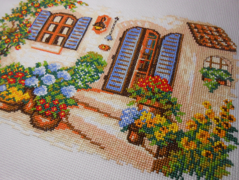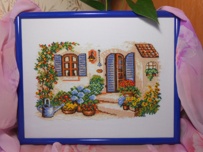Вышивка крестомПоследнее время мне очень полюбились и я все уши всем прожужжала об этом средиземноморские сюжеты. И тут на глаза мне попался старенький самый первый выпуск журнала "Все о рукоделии" (№1 июль-август 2011 г.). Дизайн от компании Zweigart сразу покорил мое сердце! Цветы в горшочках, приветливо распахнутая дверь, душистые цветы плетутся вокруг окошка... Все дышит спокойствием и уютом! Этот необычайно милый дизайн для тех, кому не по душе большой замок, вот вам маленький домик и садик перед ним, цветущий дворик, крылечко и даже лейка! Вышивался он в замечательной компании девочек в рамках совместника "Украсим наш дом". И вышился довольно быстро для меня - месяца за полтора))) Прошу - на просмотр!