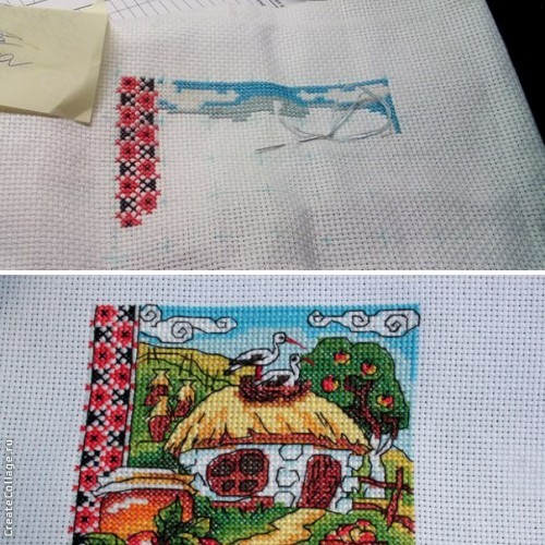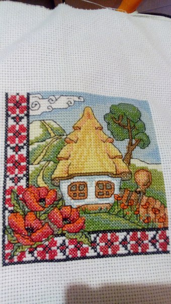 2. Хатку "Маки Полесья" от "Леди" я закончила. И начала новую, третью (иду по плану) "Медовый Спас" (пример отшива Яны Бебре, блог Ворчание бобра)