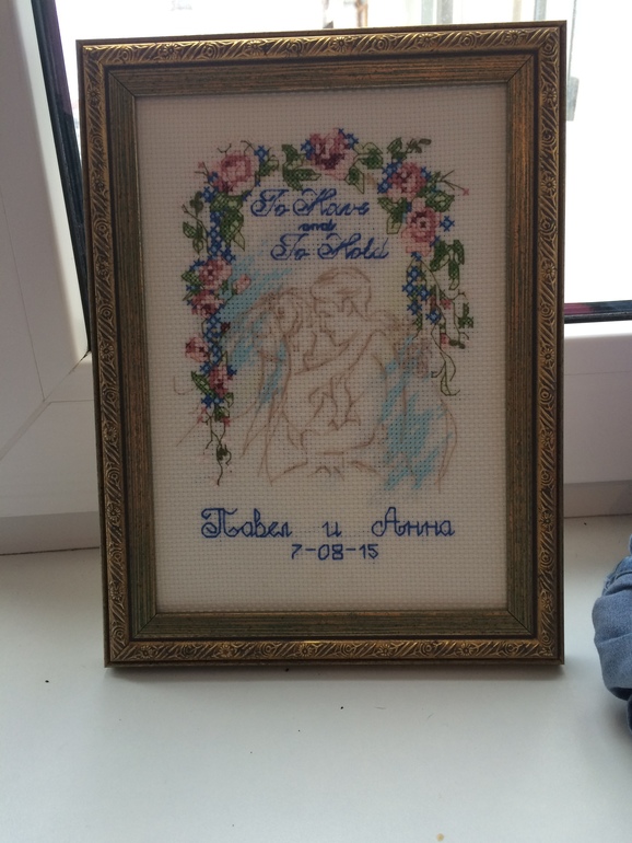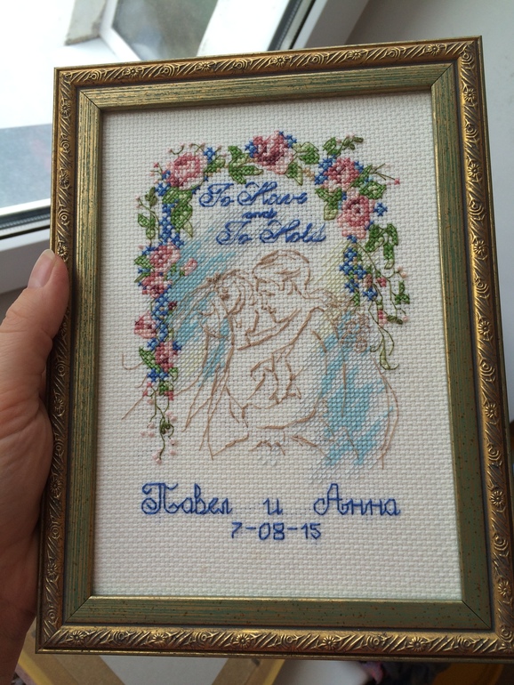И третья свадебная метрика подруге, вышита подбором на глаз, первый раз вышивала подбором, думаю получилось не дурно.