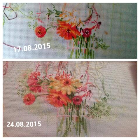Доброй ночи! Мои герберки подросли немного за недельку. План на следующую неделю дошить до половины схемы.