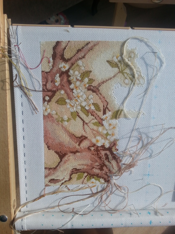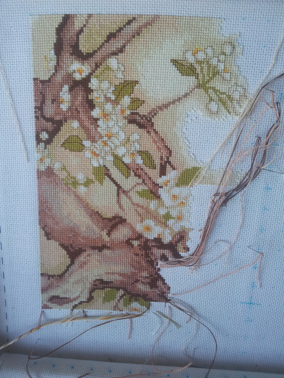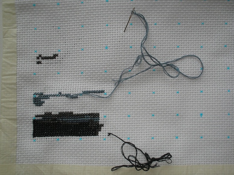 а она не должна болтатся. ее надо выводит на лицо. в определенный угол. я например вышиваю сверху вниз справа налево и иголку с ниточкой всегда оставляю внизу слева. всегда! иначе запутаешся, если начало крестика менят будеш. на изнанке остается толко стежок.