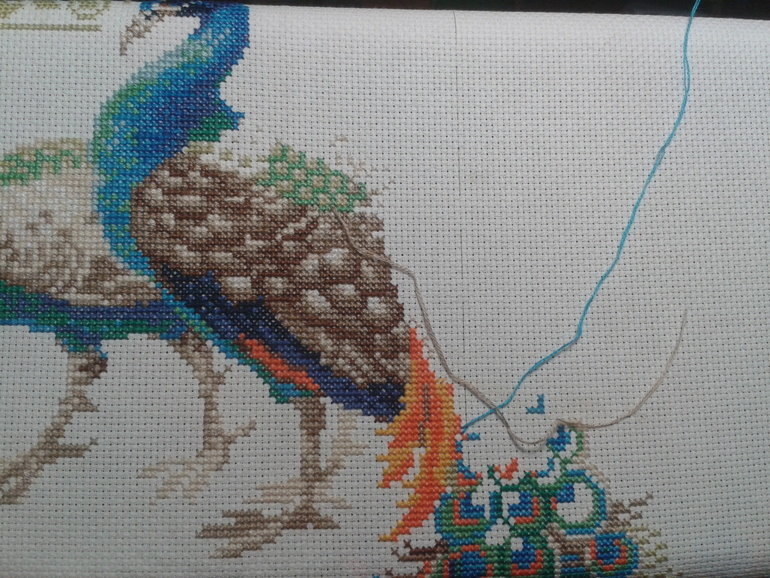 В работе у меня сейчас целая стая пернатых:) "Сад Махараджи" от Риолис, "Рождественское утро" от Овна и миниатюрка от Дим "Колибри и глициния". Овен - в приоритете!