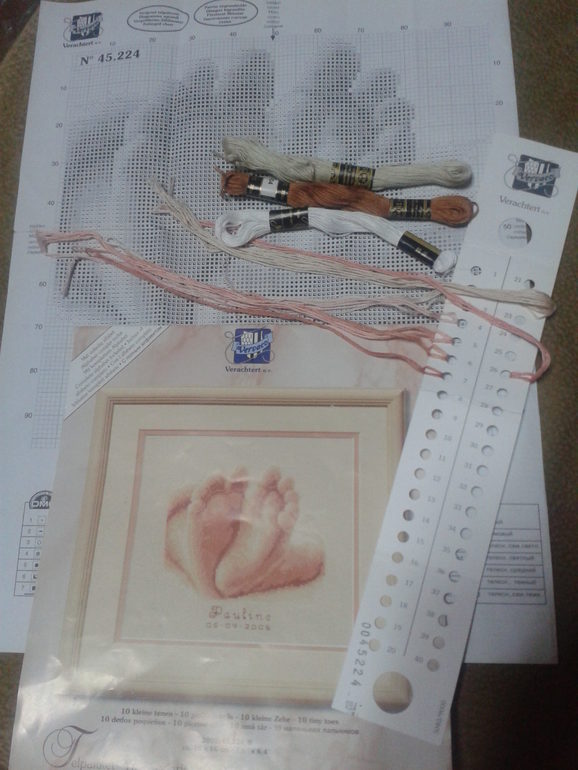 Всем огромный привет! Меня зовут Оля)) Написала длиннющий комментарий, но он почему-то не сохранился... Попробую фото отдельно вставить. Отчитываюсь поздно, долго искала нитки для совместника, ездили сегодня в Казань, удалось купить только 3 цвета из 7 необходимых... Вернулась домой, перетрясла все свои запасы и остатки наборов - и, о чудо! Нашла-таки все, что было нужно))) Вышивать буду "Ножки" от Вервако (я сама так назвала этот набор), покупала остатки от набора, очень мне он нравится. Будет подарок подруге, которая должна родить в ноябре сынулю.