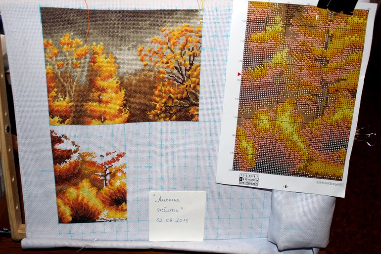 Всем привет! Бегу первый раз, ББ глючит и фотки не вставляет( Картина у меня подходящая под тему забега - "Золотые деревья" от Dome. Аида 14, размер будет 73*46 см) Большая и красивая!