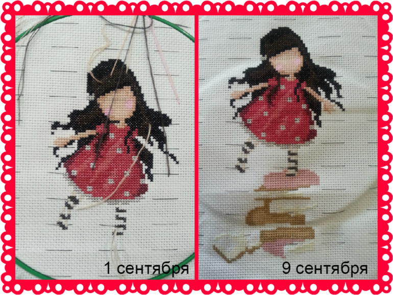 Вот и мои успехи за неделю. Вышивала только девочку, времени было не так много, но прогресс все-таки есть!!