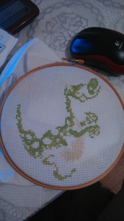 Фотика под руками нет, а завтра опять рано уезжаю и не уверена , что успею отчитаться с нормальным фото. Делаю несколько параллельных процессов, поэтому вышиваю в этом совместнике медленно.