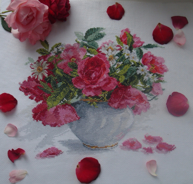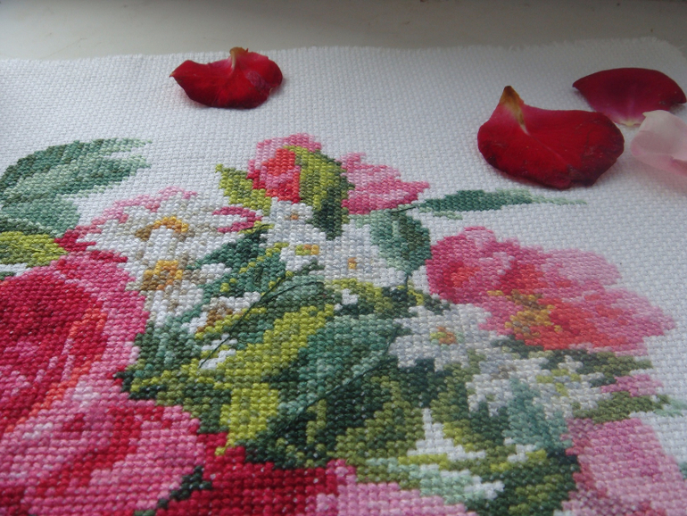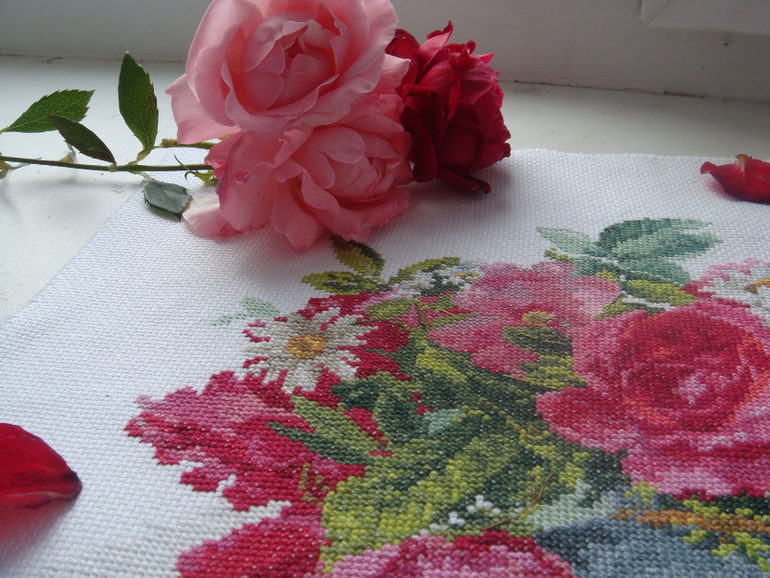 Вышивала эти цветы ровно 4 недели.