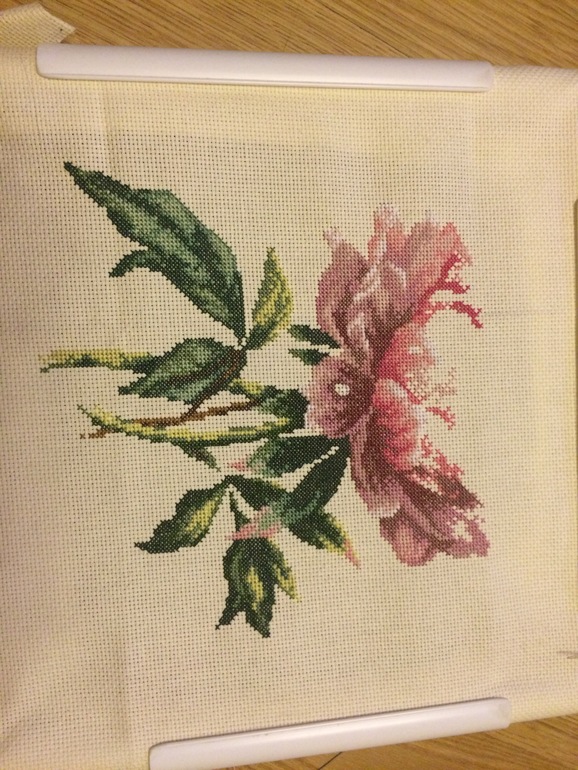 На этой неделе удалось повышивать мой пион, уже хочется скорее закончить. Надеюсь, скоро.