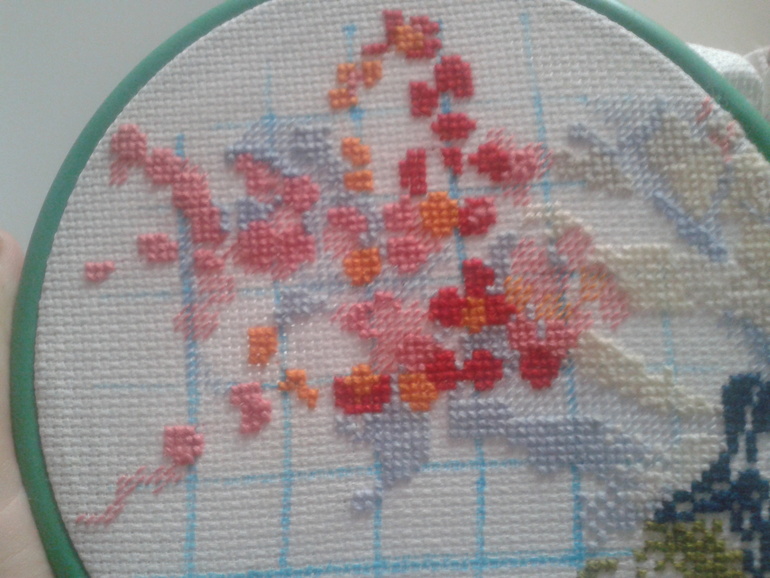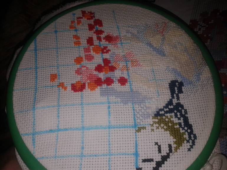 Стараюсь. Вышито чуть больше четверти. А уже через 2 недели половина совместника будет. Мне нельзя сбавлять обороты