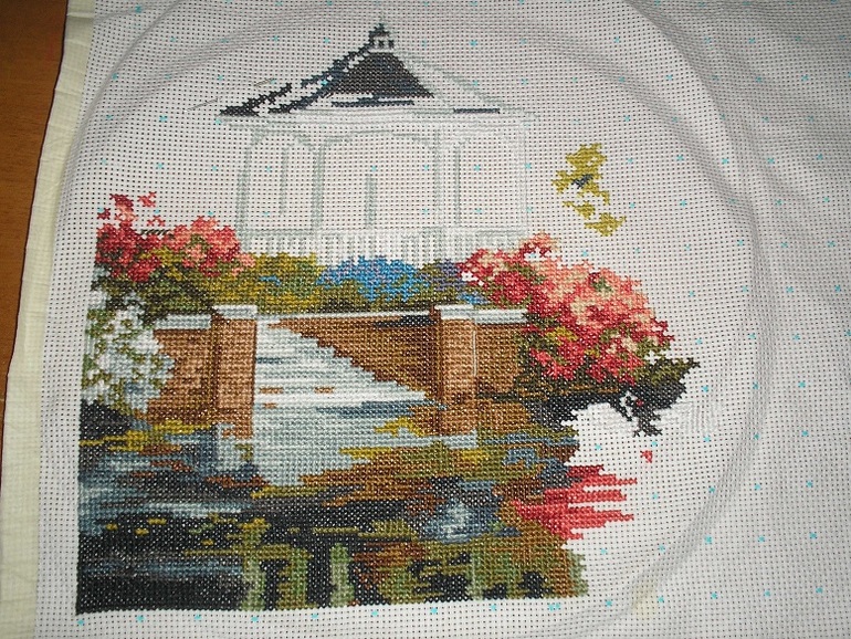 Нитки в наборе просто ужас, постоянно путаются и очень тонкие. Вышиваю в 3 нитки и все равно видны просветы.
