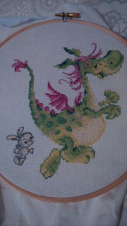 Вышила только милипусельного зайчика...А еще там 2 фруузелка и с ними я повозилась, хотя обычно для меня это не сложно. Видимо, давно дизайны с ними не шила)