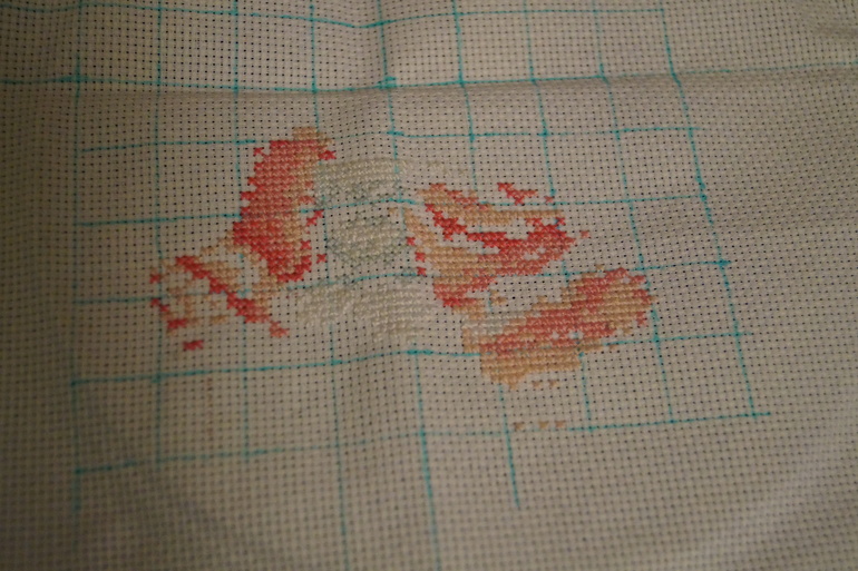 П.с. Верх картинки не видно, т.к. перетянула канву. Бэком верхняя часть обшита только частично, полностью буду обшивать после окончания крестиков.