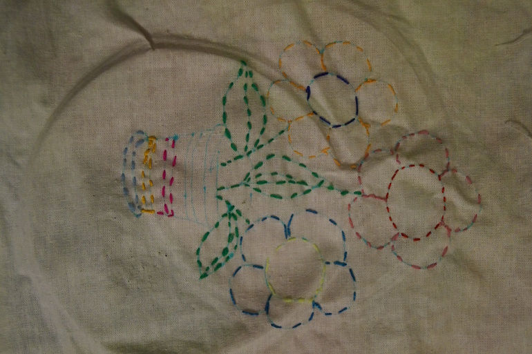 А еще глядя на меня, моя дочка приобщается к вышивке, правда пока швом вперед иголку.
