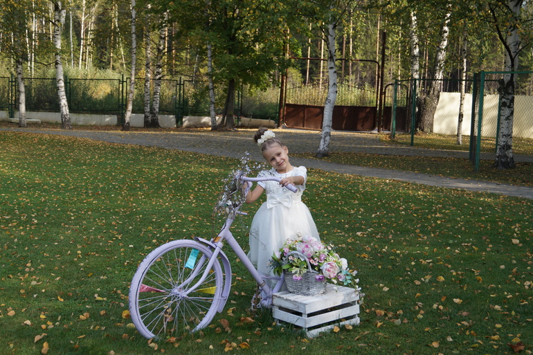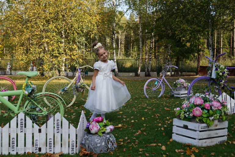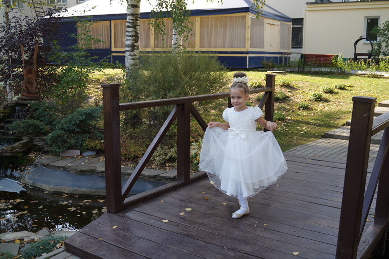 С дочкой ехдили на выступление, где она участвовала в танцах - танцевала медленный вальс и ча-ча-ча.А после пофотографировались немного, уж очень красиво было.