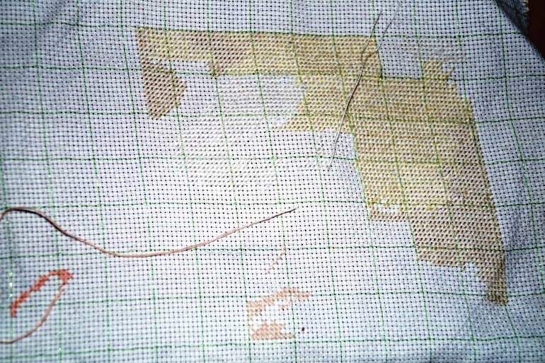 Что-то вышивка с белыми оттенками у меня засвечивается, как не фотографирую. Вышивала достаточно большей частью белыми нитками. Надеюсь разглядите. Уголочек еще подрос. Пока держу ровный еженедельный темп.