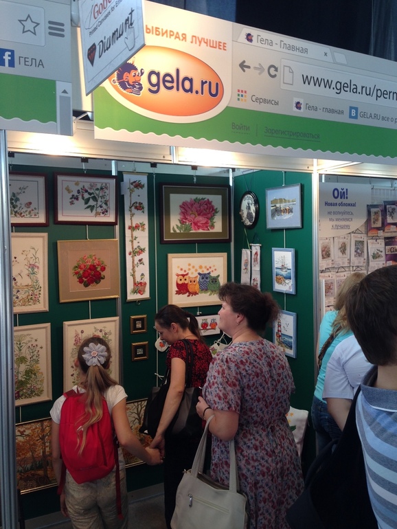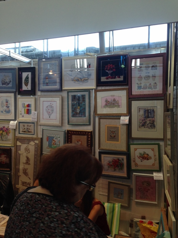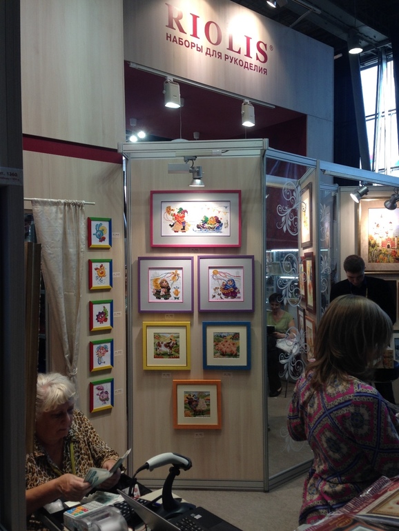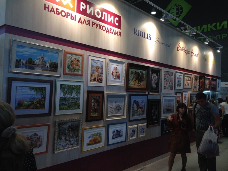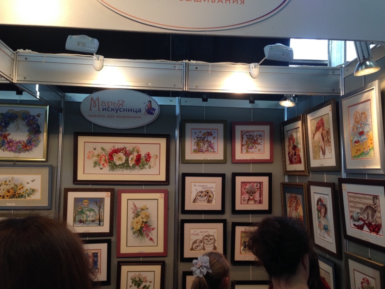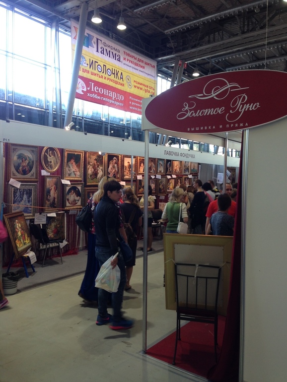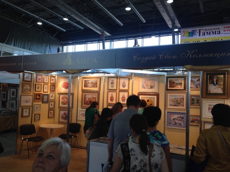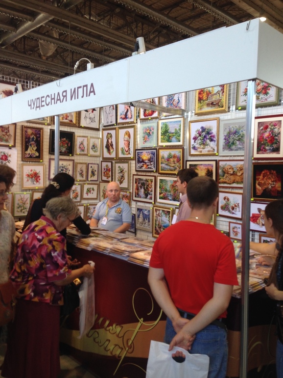 Находилась я там ограниченное время, т.к. моя семья пошла мне навстречу и отпустила в "рай вышивки", т.к. для меня значение имели только стенды с крестиками и никакие другие больше. И сразу оговорюсь, что целью было - только посещение! Вот такая я хладнокровная, не поддавалась слабости и денег потраченных на хобби было ровно 100 руб. Не мучайтесь, купила пластиковые шпульки для мулине и детям пирожки на 150 руб