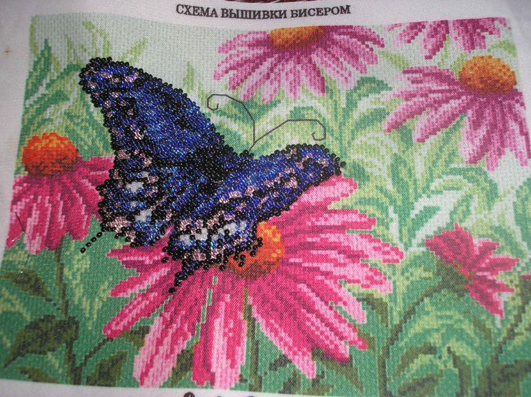 Есть вопрос!Набор для вышивки бисером "Бабочка". Нужен совет, вышивать ли фон? Ощущение как будто работа не закончена. А как на ваш взгляд?