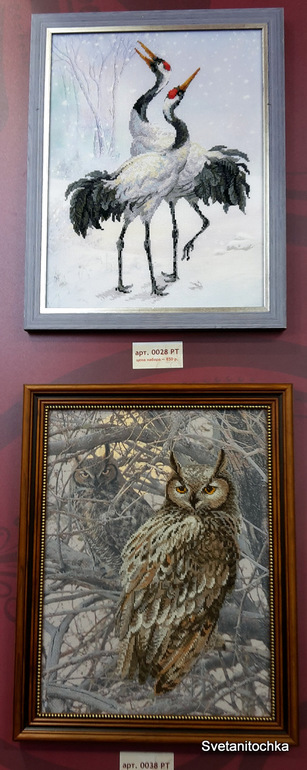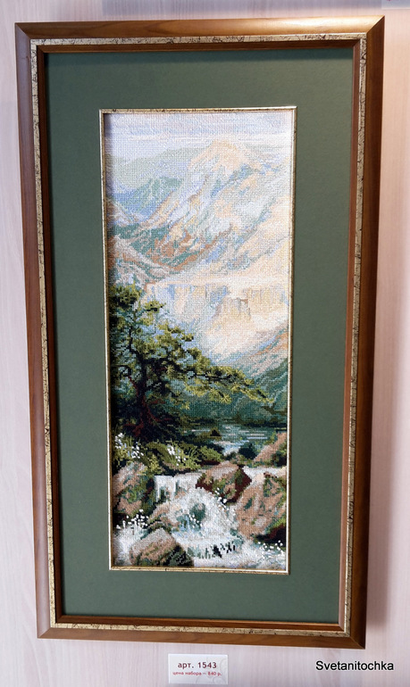 Я была шокирована сразу, как только попала в зону Риолиса!!! Не ожидала, что впечатления от вышитых работ сильно отличаются от впечатлений от картинок с обложки наборов. Некоторые работы я представляла себе в меньшем размере, в некоторых разочаровалась совсем. Вот, например, горные пейзажи, которые хотела приобрести, покупать не стала: