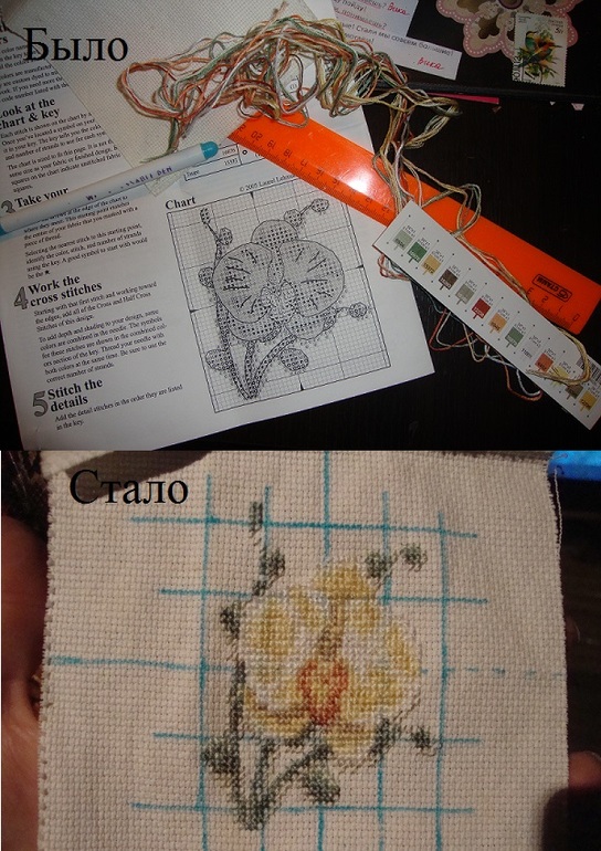 Привет! А я жду-не дождусь когда уже дерево закончу и приступлю к самой красоте своей вышивки - к павлину! Деревца осталось совсем чуть-чуть. Вот мое было-стало: