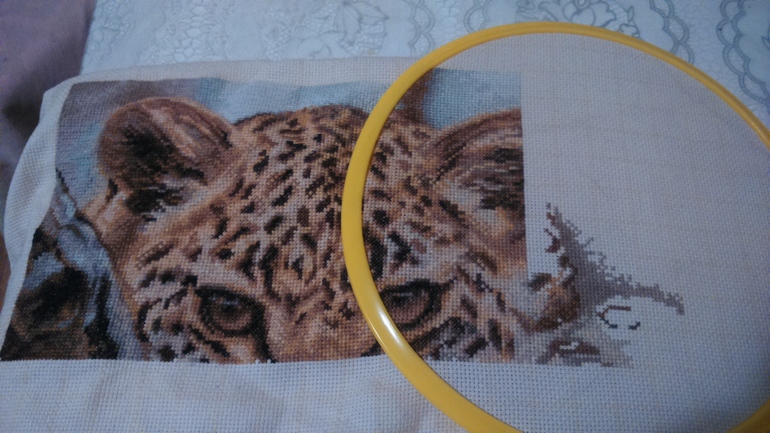 Я вообще за леопарда сажусь только в пятницу вечером, в воскресенье вечером отчитываюсь. Я еще в детском совместнике участвую, там шью уже 2 работу, но они обе мелкие отдыхалочки. Вот по детским вышивкам отчет во вторник-среду. Вот во вторник вечером я сажусь шить только детскую, чтоб к среде отчитаться...