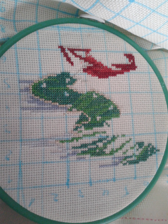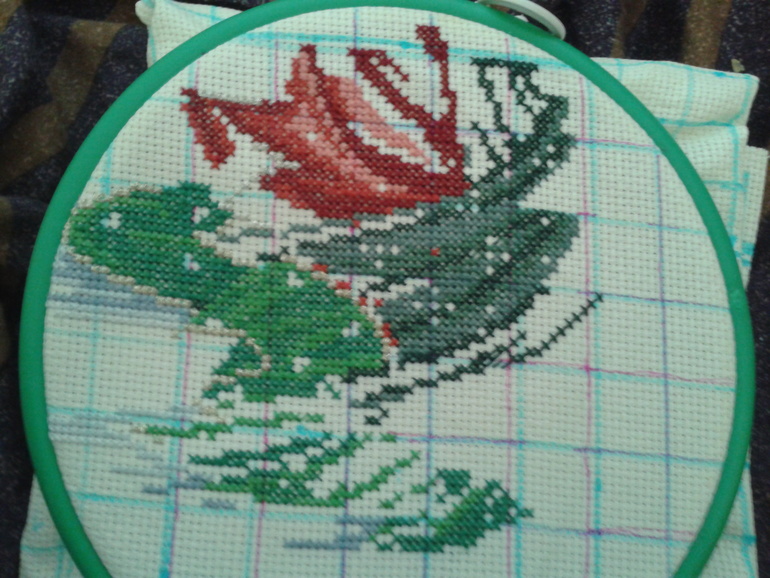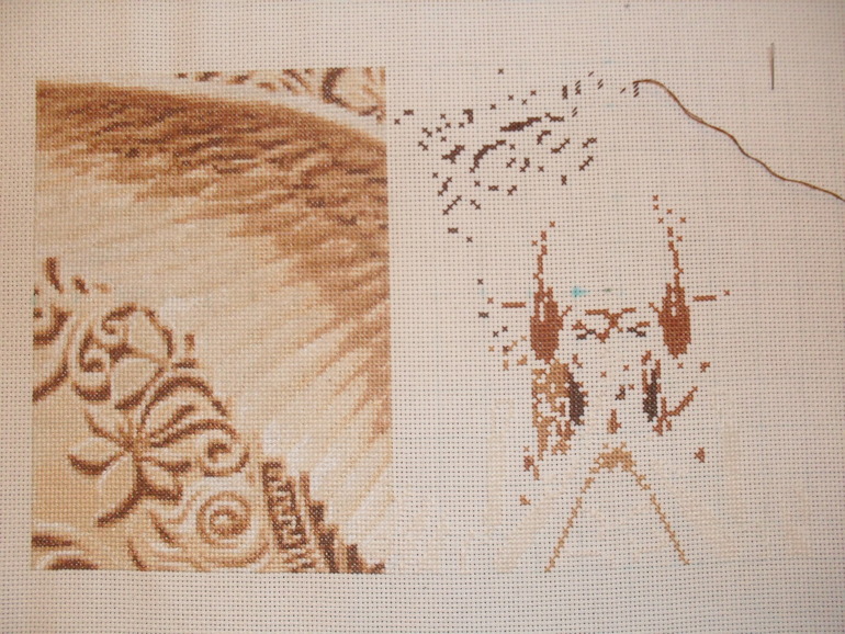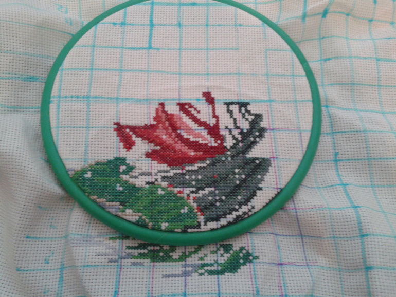 бисер будет в самом конце, ибо на пяльцах шить-это передавливать и выдирать и решила я пойти вверх, так что следующий отчет будет вот с такого ракурса))