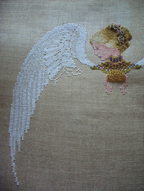 Девочки, привет! Я всю неделю вышивала крылышко ангела, но так и не успела закончить.