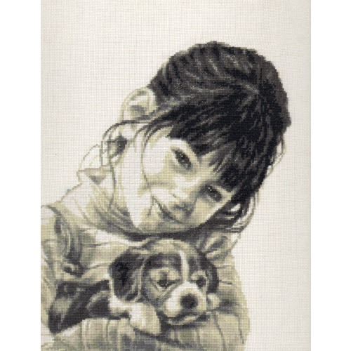 Эта девочка запала мне в душу и я не смогла пройти мимо, вернее прошла, а потом вернулась "Девочка со щенком" фирма "Палитра", впервые столкнулась с набором данной фирмы, комплектация отличная и схема 3-х цветная очень удобная, читаемая и понятная, нитки ПНК им. Кирова, канва Aida Bestex №16.