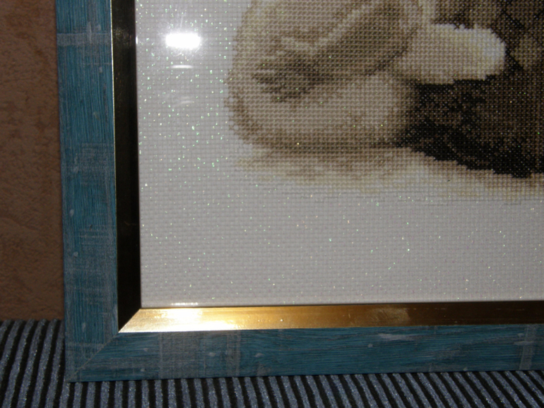 внутренняя сторона рамки покрыта приглушенным золотом...приятно гармонирует с оттенками вышивки)