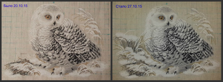 Спасибо) Да, сова прелесть, правда мне бы её ввшивпть попозже, когда опыта наберусь, а то крестики пляшут в разные стороны, либо купить станок диванный, мечтаю о нём. Тяжко держать в руках работу и шерстью навису вышивать. Мне кажется тут и стежкоукладыватель не помешает))
