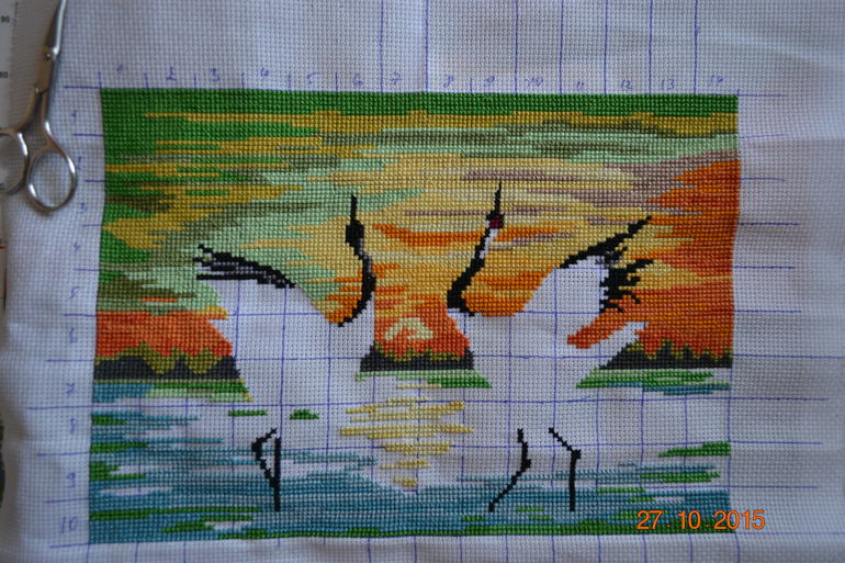 Спасибо. В реале еще ярче и объемнее. Небо вышивается в 1 крестик, там где светлые тона (верхняя правая часть) вообще как будто не вышивка, а штрихи акварелью. Крестики очень тоненькие и практически незаметные, а отлив дают. Вспомнились уроки по ИЗО (рисованию) в школе, когда на смоченную водой бумагу мы наносили краски и аккуратно соединяли их. АХ...