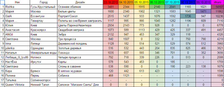 Как видите и в этом забеге победителем оказалась Rishka.