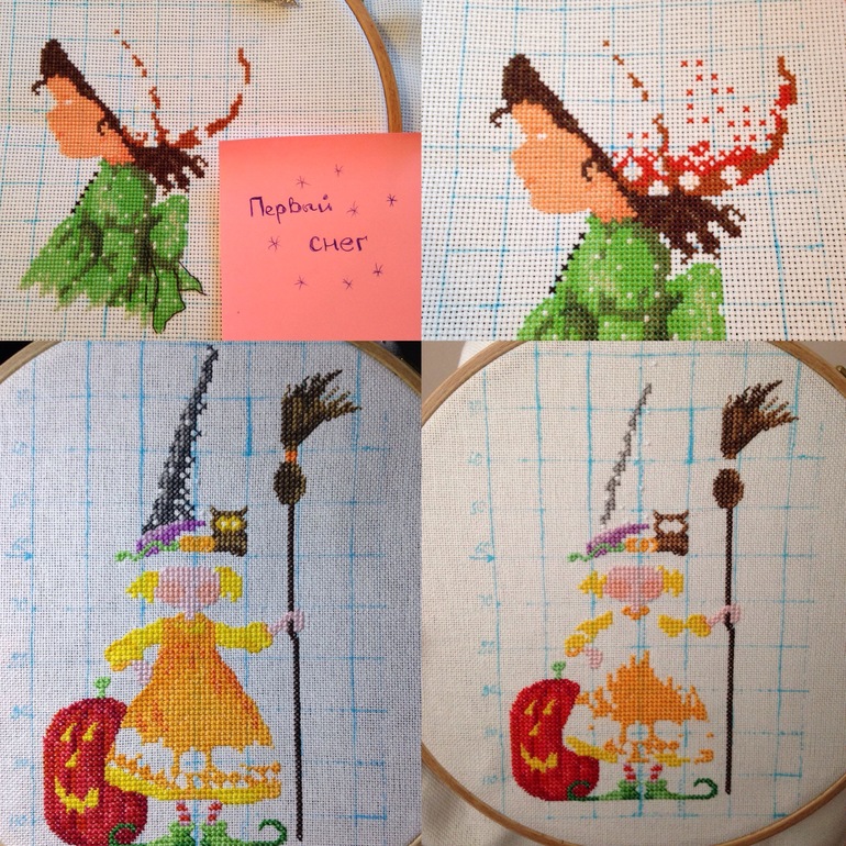 Всем привет .. я быстренько отчитаюсь) ..дети продолжают болеть, но я стараюсь не унывать.. Осенняя вышивка немного продвигается: было/есть/будет А, совсем забыла..умудрилась даже закончить работу для конкурса..мелкие довольны, привидения светятся)) Всем ровных крестиков и не болеть!)