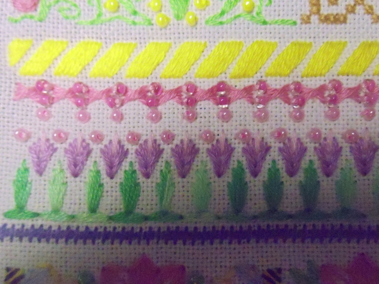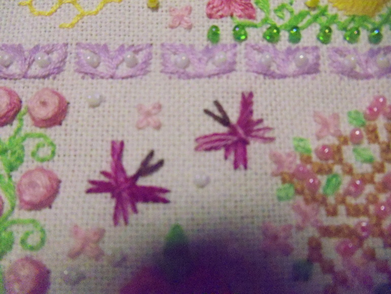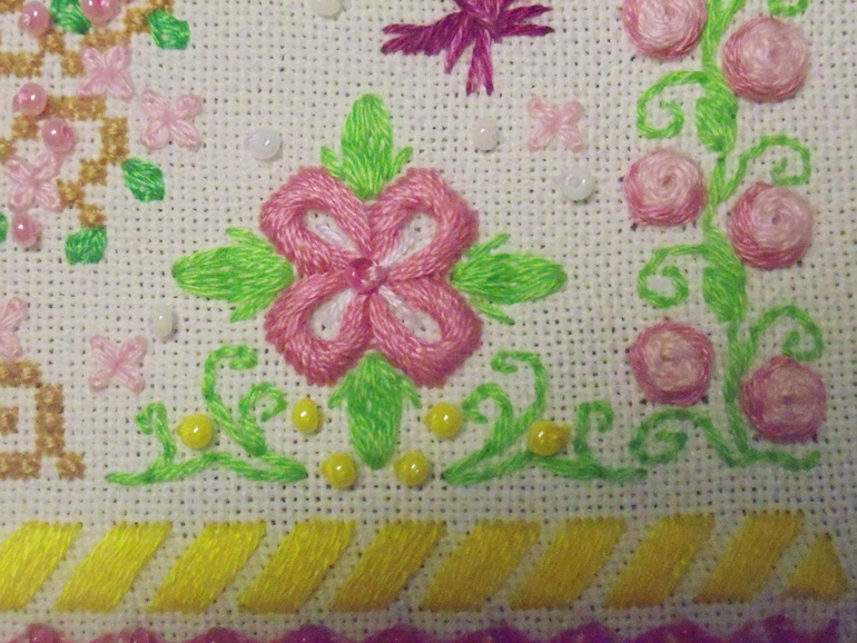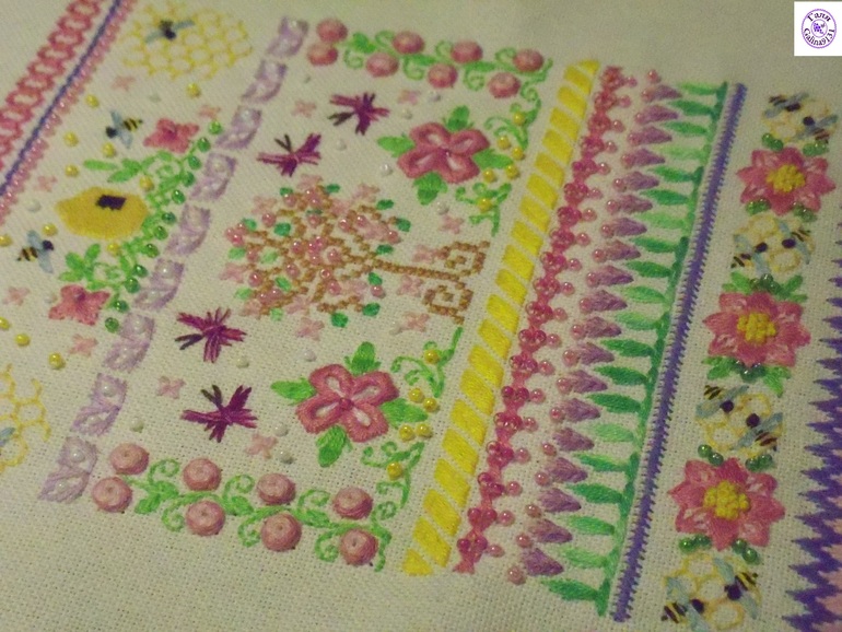 Никак не хочет фотоаппарат передать всё обилие цветов!(((На самом деле всё намного ярче и красивее!Напоминаю,что сэмплер вышит по схеме Марины Ткачёвой.Их будет 4,как и времён года!Сразу же хочу предупредить,что посылать схему никому не буду.