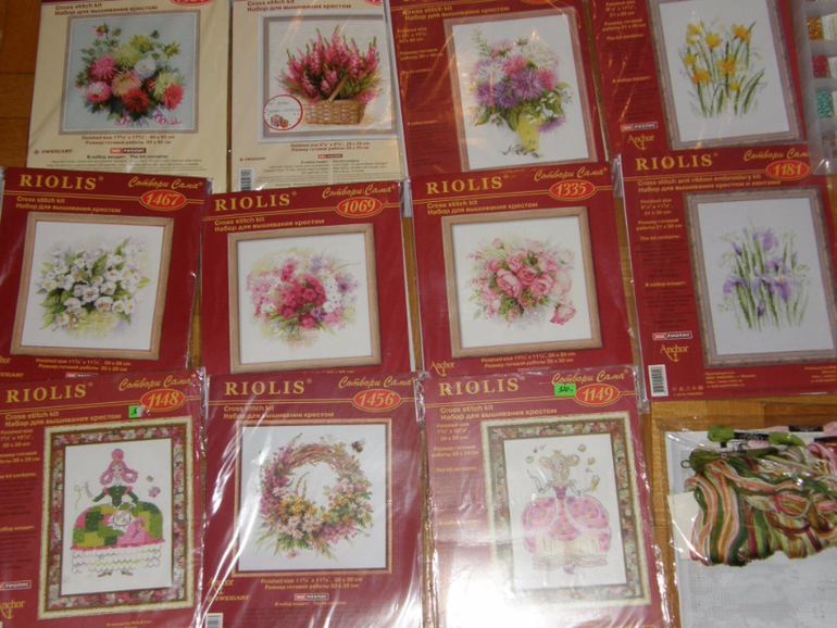 а это два набора ниток Космо со схемами для букетов Фуджико)) и две коробочки с нитками и украшениями для двух Мирабилек))