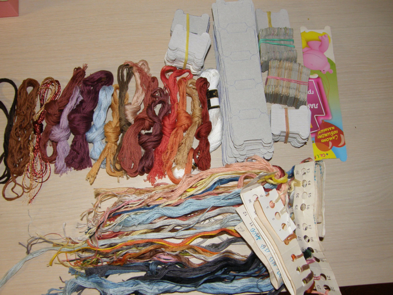 Готова отдать в подарок..просто жаль выкидывать..может кто-то ребенку своему отдаст ниточки..схем в интернете много..а дочка с удовольствием по ним повышивает подбором))