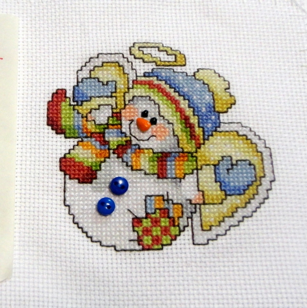 Канва белая 18-я. Мулине ДМС по ключу. Глазки - черный бисер. Пуговки получены в подарок от Вики Vika .
