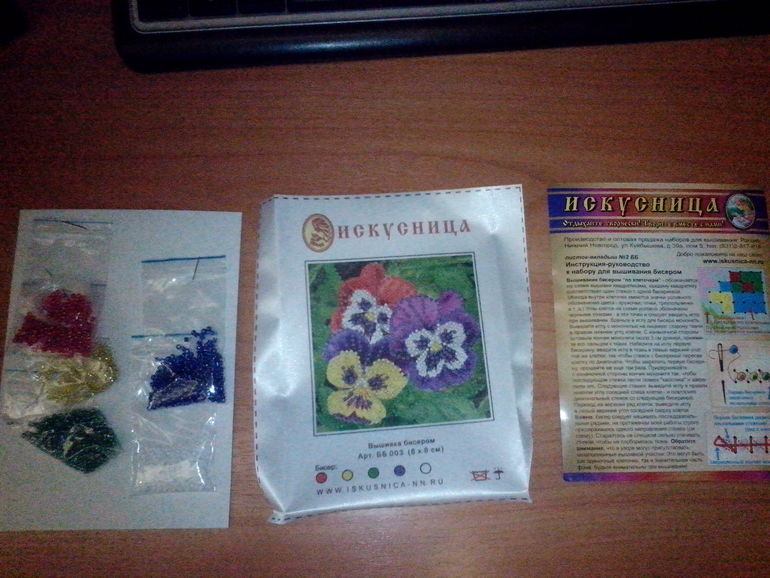 Вот на этом лоскутке и шьете бисером. Канвы, как для мулине, не будет в наборе. На лоскутке должны быть цветовые кружочки там, где надо пришивать бисер. Только с шелком аккуратнее, он тянется и сильно нить не затягивайте. Посмотрите по инструкции, как пришивать бисер или в инете посмотрите. Это не сложно.