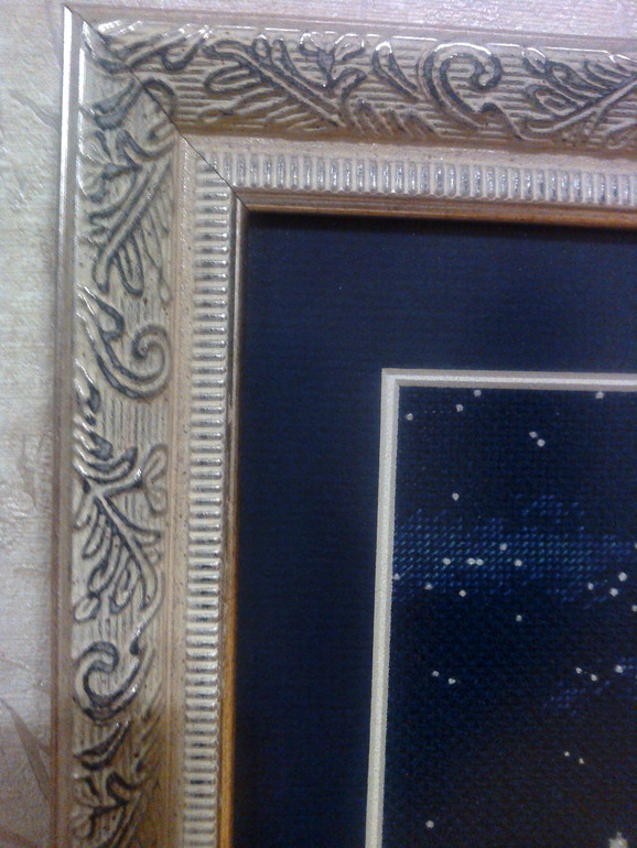Вышивка крестомЗабрала сегодня из багетки и сразу к вам. Выбирала багет между темно-коричневым и этим,а паспорту сразу хотела темно-синее,но чтобы не сливалось с вышивкой,отделила его тонкой полосой светлого паспорту,в тон раме и вот что вышло