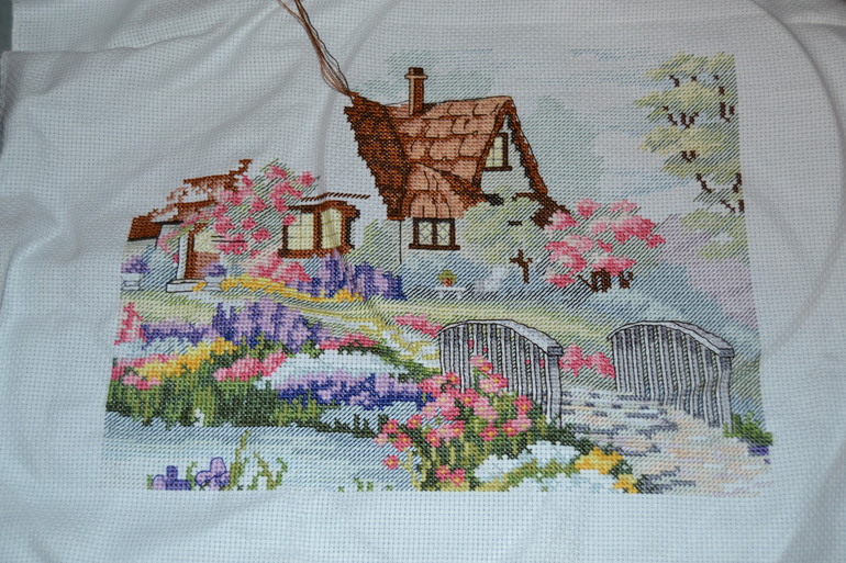 Всем привет!На этой недели закончила домик-дачу.Хочу сделать из нее наволочку.Покажу чем еще занималась,тоже медленно идет и кропотливо-похоже на вышивку.А так как я подсела на вебинары по декупажу при этом я вышиваю начну новогоднюю картинку в подарок.Всем желаю легких крестиков и хорошего настроения!!!