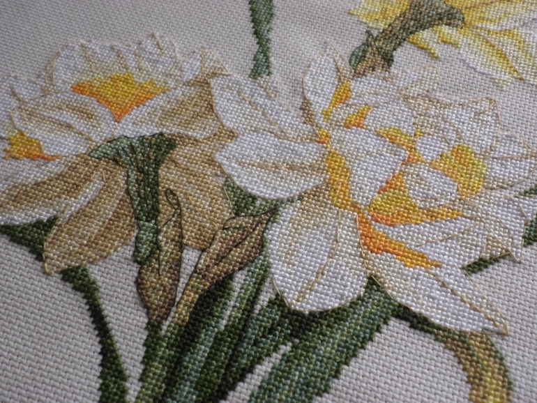 Нарциссы великолепны! Самые реалистичные, на мой взгляд)) Эх, их бы еще да льне вышить... Хотя вот смотрю на последние дизайны МИ - и думаю, что они молодцы, очень "выросли" в последние время и в плане дизайнов и в плане комплектующих материалов)))