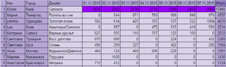 17,5 тысяч это нечто! )) Но и остальные молодцы! Особенно приятно видеть "рывки" по знакомым работам. Тоже постараюсь следующий забег не прогуливать, в этот раз вообще с вышивкой не срослось.